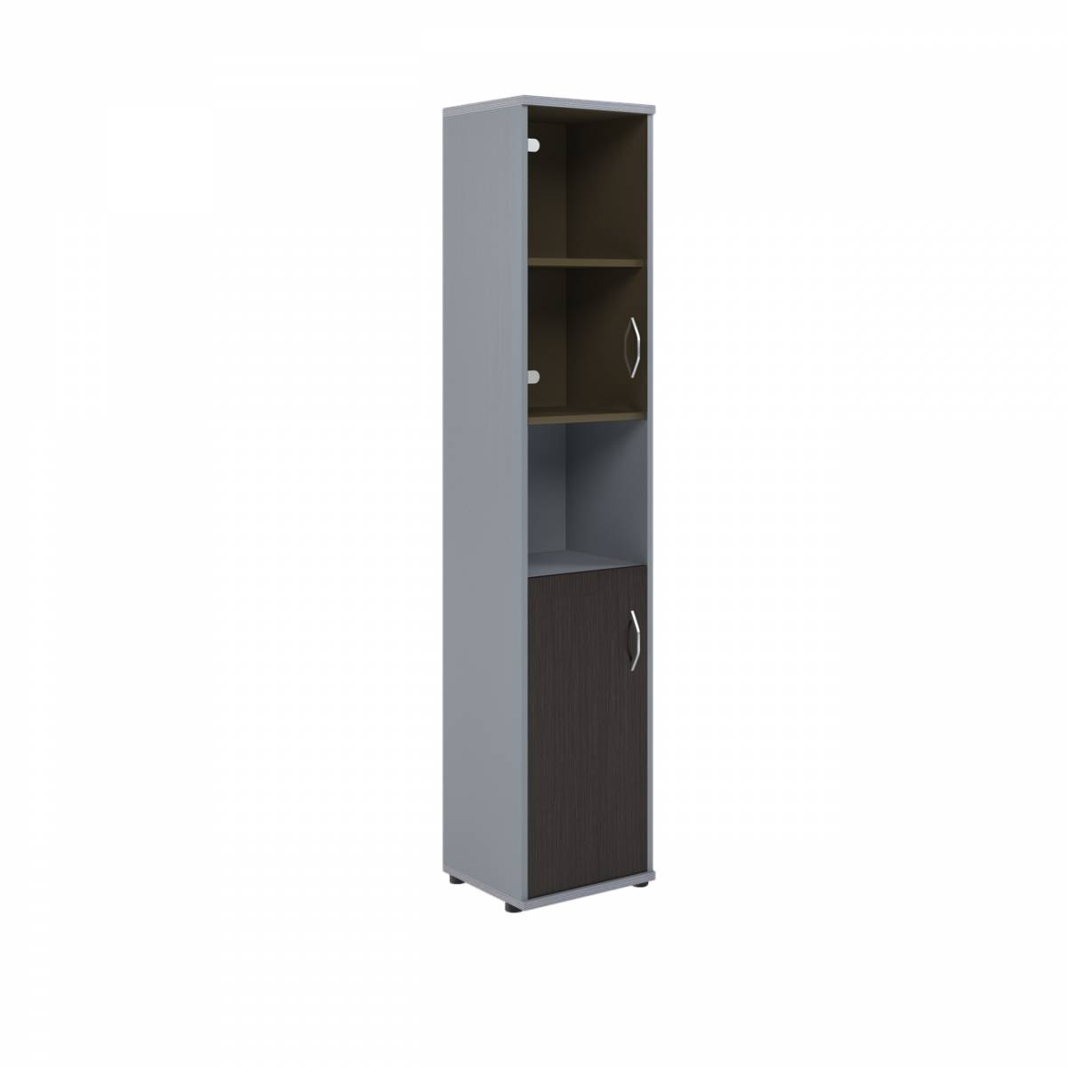 Шкаф колонка с малой глухой и стеклянной дверьми СУ-1.4(R) Венге/Металлик 406*365*1975